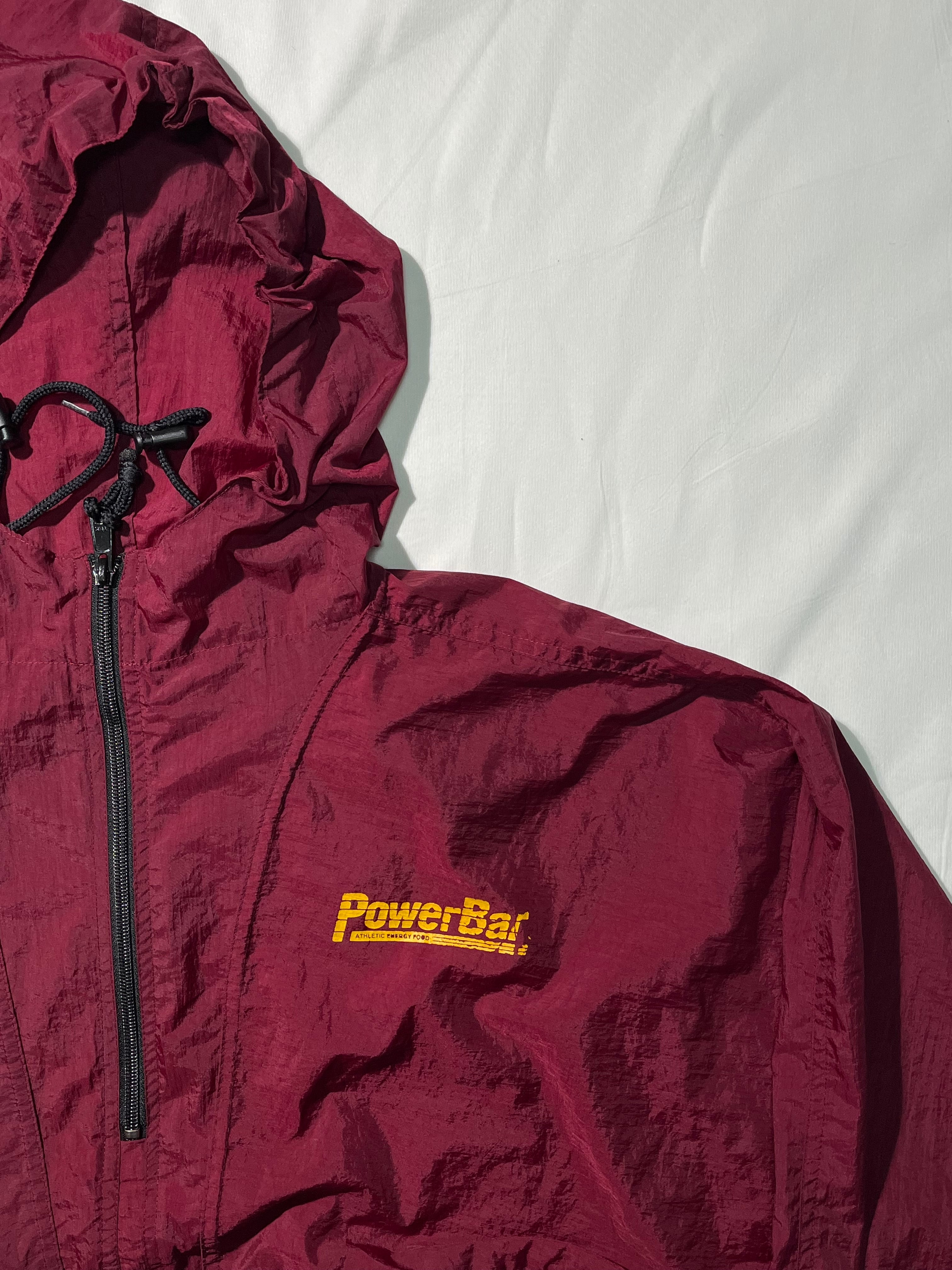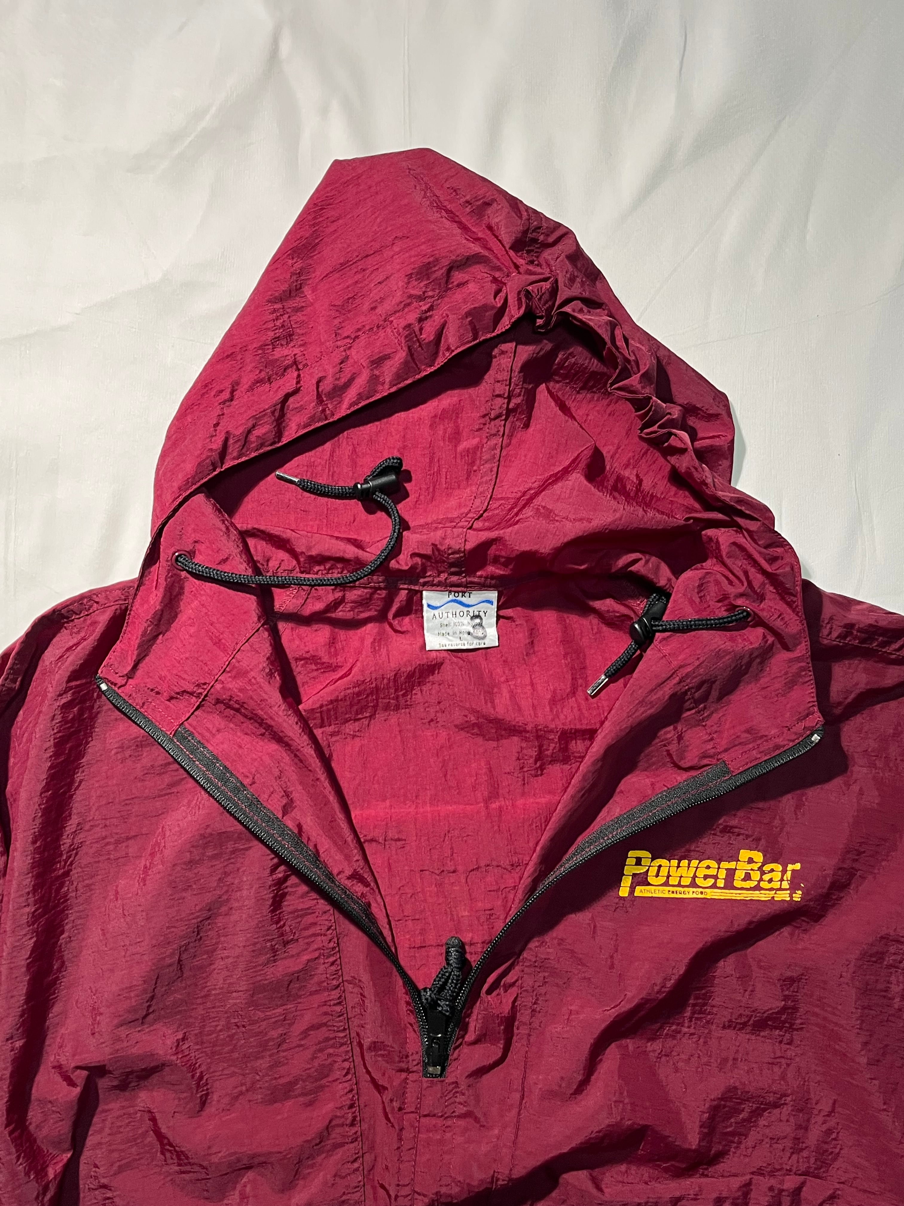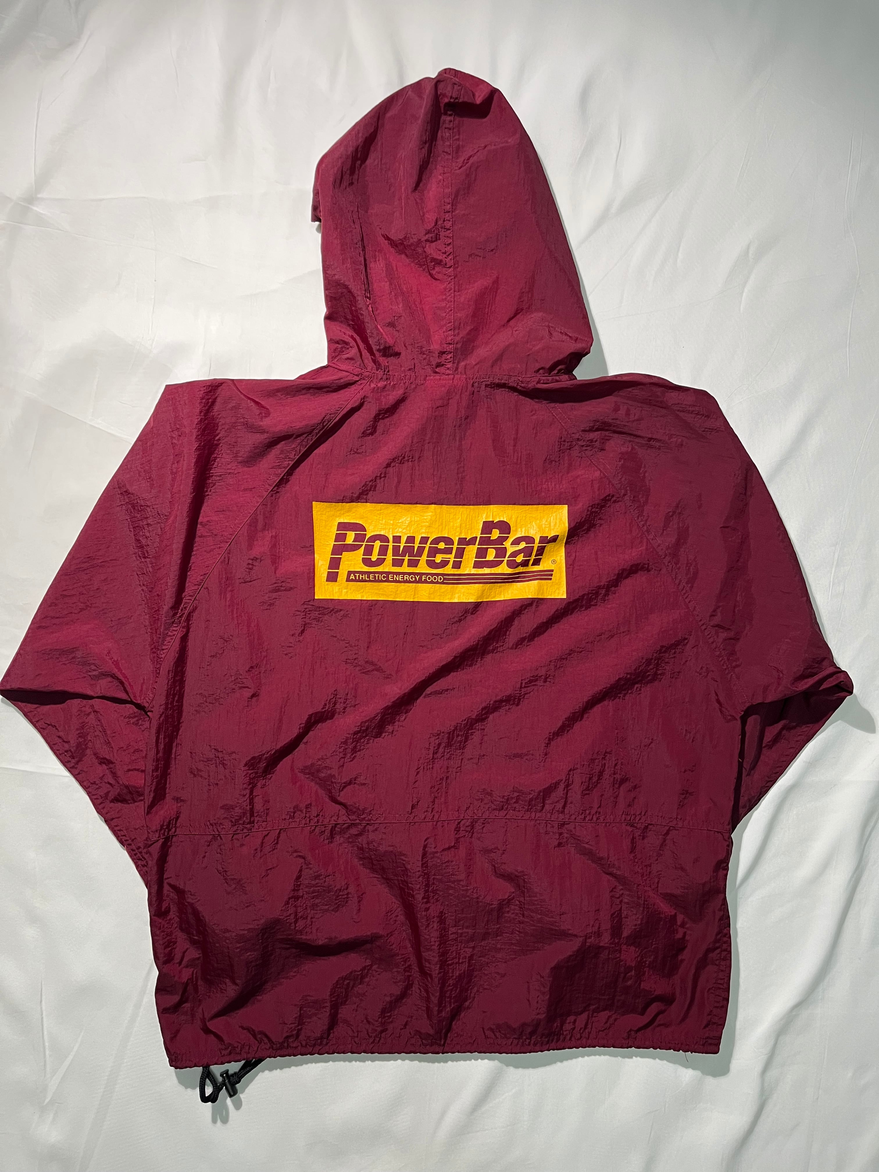 フロントバック両面にパワーバーのロゴがプリントされたナイロンアノラック。